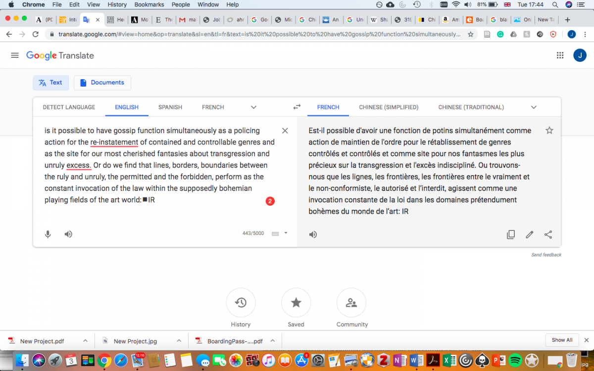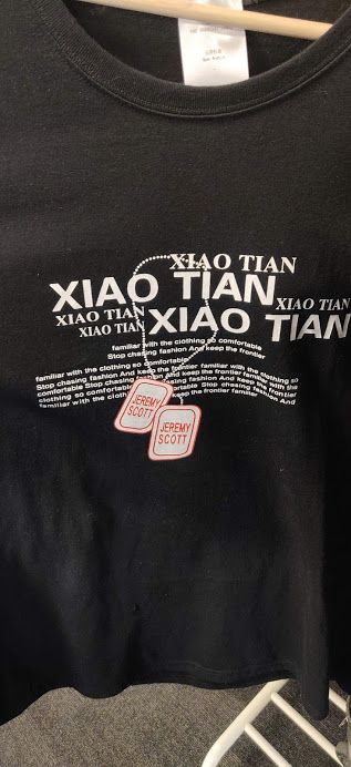 The kind of consumers of Shanzhai shirts that are collected by Shanzhai Lyric include young female assembly workers like Tian Yu, who takes a prominent position in my PhD research. “Xiao Tian Xiao Tian” is a response to Shanzhai Lyric's archive at Women's Art Libray. It is an image manipulated from a pair of supposedly Jeremy Scott shirts, and makes visible the practice of gossiping between female factory workers as a minor genre of resistance. The minor genre is taken from Deleuze and Guattari’s minor literature which is constructed by a minority within a major language and that is political. The image features a hand-written text translated by Google from English to French to cover the original French text on the shirt, that even a Shanzhai shirt couldn't escape the rigorous fashion hierarchy with haute couture atop it all. The written text on gossip - sourced from Women’s Art Library - is from Irit Rogoff’s asking on the death of Ana Mendieta, who was allegedly murdered by Carl Andre.