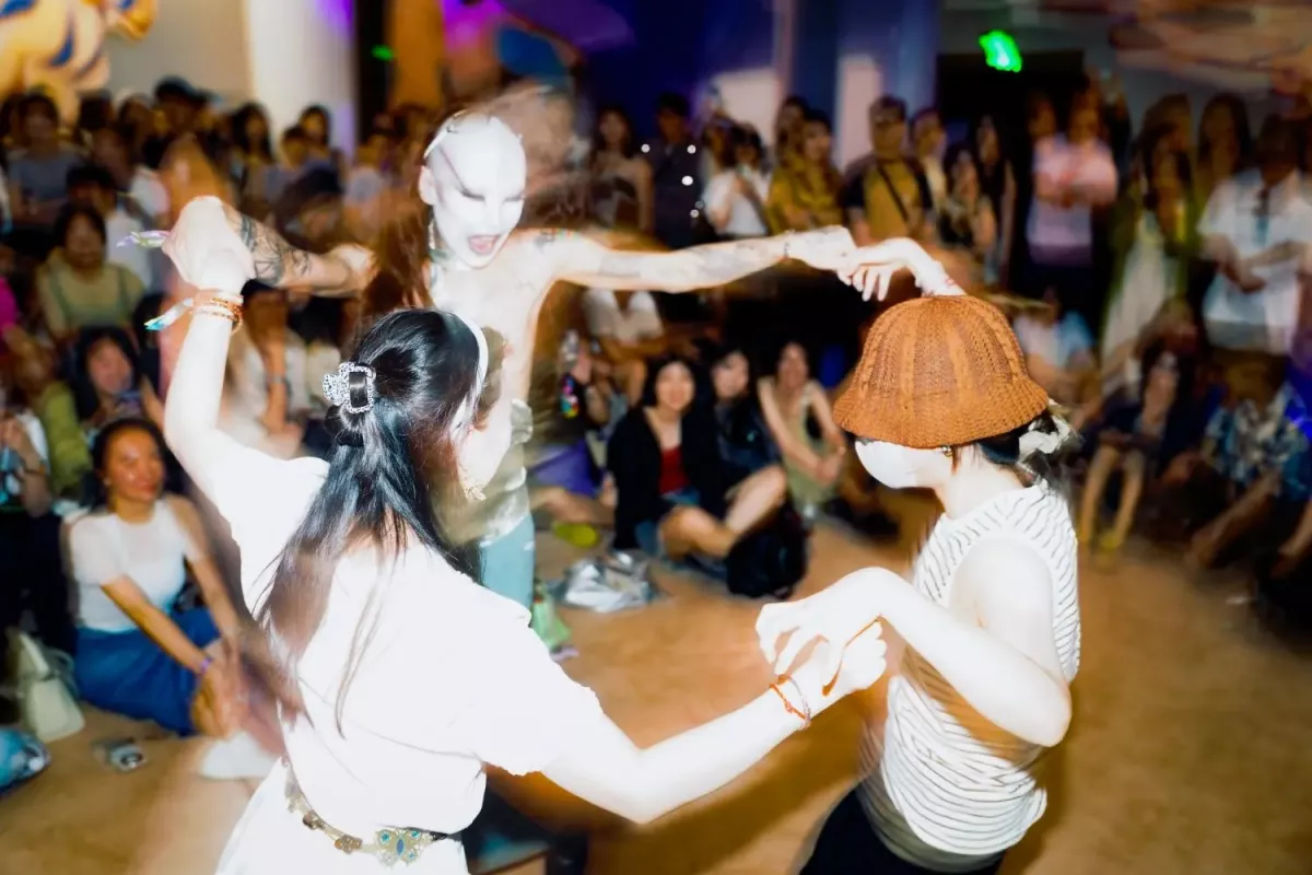 Sci-Fi Summer (Love) creates a party scene at the museum with electronic music, video, and dance, alongside a market with eight artists. The commissioned text "Bee or Heidegger" from sci-fi writer Tang Fei will be broken down into fragments and appear on tokens as a currency for exchange for the night. The tokens have to be earned from the market-stall artists who offer interactions based on the different forms of exchange in speculative scenarios. The tokens can then be spent throughout the evening on performances full of cultural relics, drinks, and other memorabilia. Fragmented attention is spent on the market to earn tokens, in order to be immersed in collective emotions at the party.